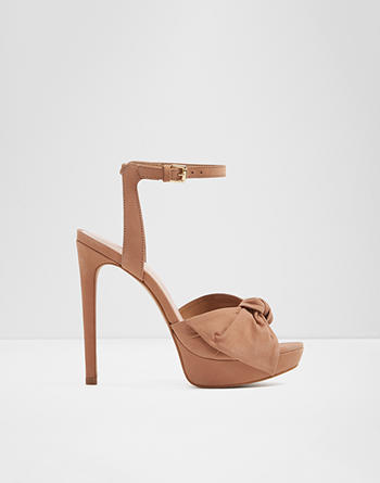 A knotted bow enhances the feminine essence of an ankle-strap sandal, lifted by a bold platform and high heel.