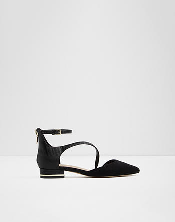 A high style, set on a low heel, these pointy toe shoes are a modern take on the classic mary jane.
