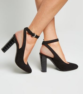 It's all in the detail with these faux croc heel courts. Style with a black bodycon dress for a sleek party look.