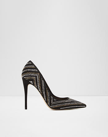 Rhinestones add razzle and dazzle to this sexy stiletto heel. Perfect for partying the night away.