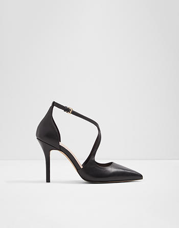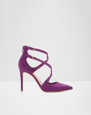 These strappy heels make a sharp impact for day or evening. Set on a slender high heel, criss cross cross straps fit and flatter.
